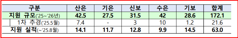 - 정책금융기관은 8월까지 지원에 머무르지 않고, 관세 부과 조치에 대응하여 2026년까지 총 172조 원을 지원