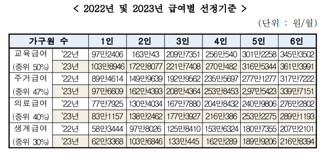 2. 2023년 기준중위소득 금액