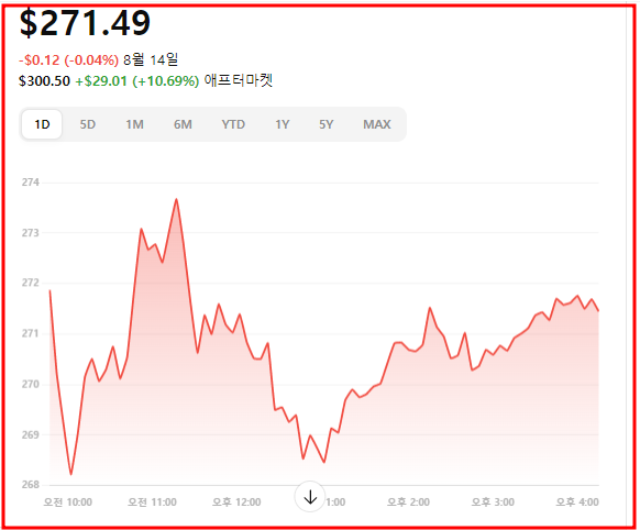 유나이티드헬스 그룹은 뉴욕거래소에 상장되어 있습니다. 최근 미국 현지 8. 15. 기준 주가는 271. 49달러입니다. 아래 그림은 월봉차트입니다. 한 때는 630.73달러를 기록하기도 했습니다. 그리고 최근에는 다시 워런 버핏의 버크셔해서웨이가 대규모 지분매입을 하면서 주목을 받고 있는 모양새입니다. 8월 15일 애프터 마켓에는 10% 넘게 올랐습니다.