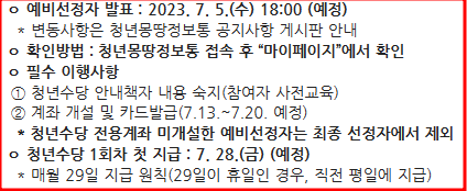 청년수당 2차 선정자는 7월 5일 18시에 청년몽땅정보통에서 확인할 수 있습니다. 선정이 된다면 청년수당 1회 차 첫 수령일은 7월 28일이 됩니다.